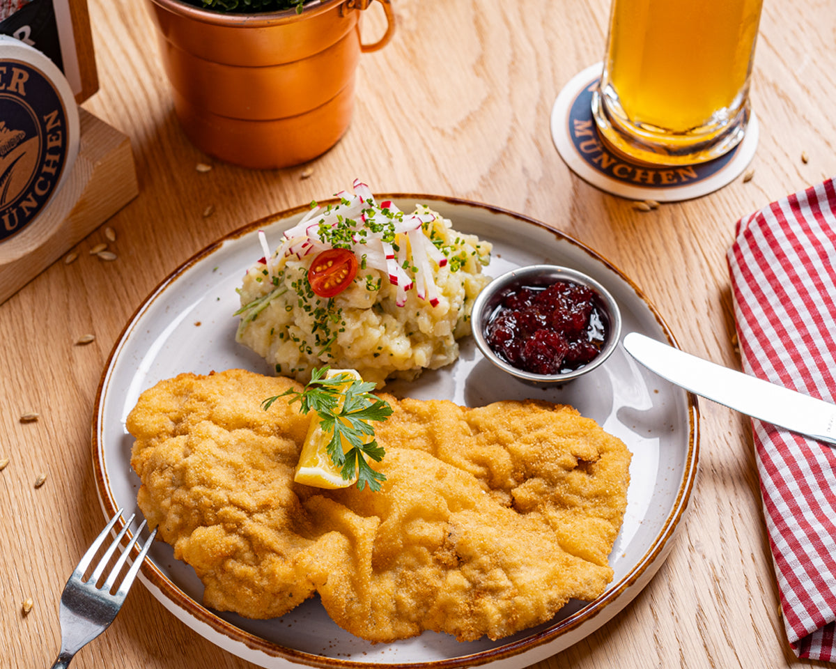 Our Bavarian menu houses mouthwatering Paulaner platters, beloved Munich specialties, and exciting international dishes.
