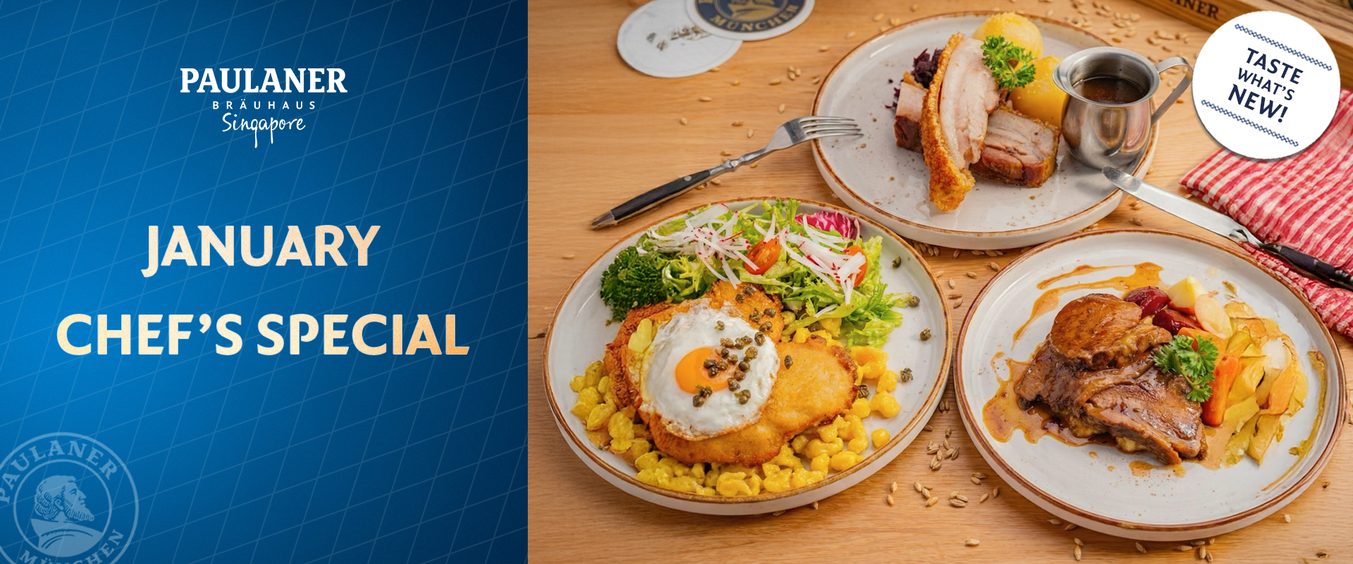Discover what’s new this January with our Chef’s Special. Thoughtfully prepared dishes highlighting comforting flavours and seasonal favourites, available for a limited time at Paulaner Bräuhaus Singapore.