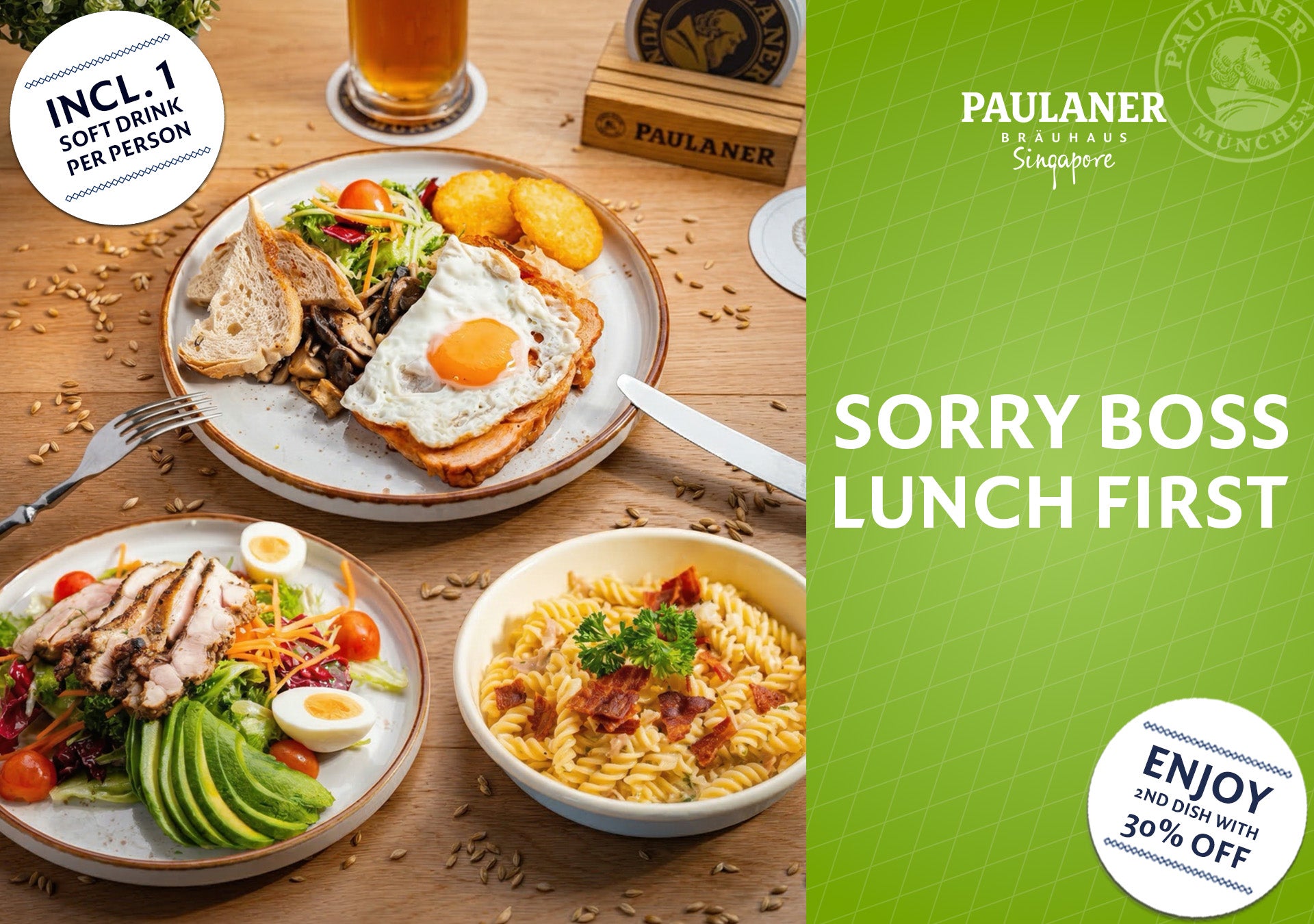 Some things just can't wait. Get 30% off your second dish, plus a complimentary soft drink per person. Pull up a chair, take your time, your inbox will survive. Whether you're catching up over a lunch date or stealing a proper break from the workday, Paulaner Bräuhaus Singapore is the perfect midday reset.